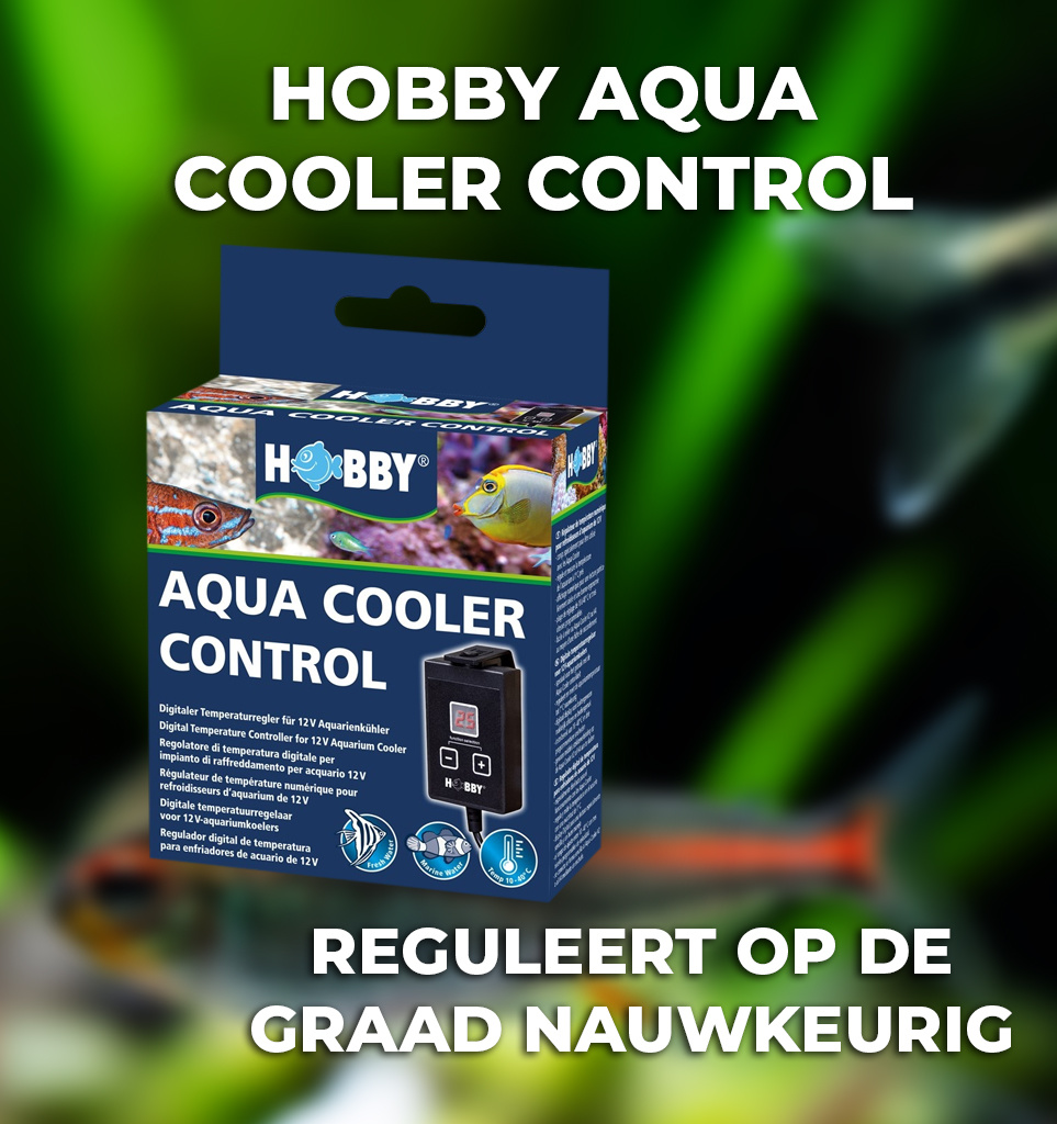 Het V2 model met 2 ventilatoren en V4 model met 4 ventilatoren zijn uit de breiden met een Hobby Aqua Cooler Controller. De Aqua Cooler Controller meet de watertemperatuur in het aquarium op één graad nauwkeurig. Met een instelbereik van 10 tot 40 °C en drie geprogrammeerde snelheden kunt u de waterkoeler naar uw eigen wensen instellen.