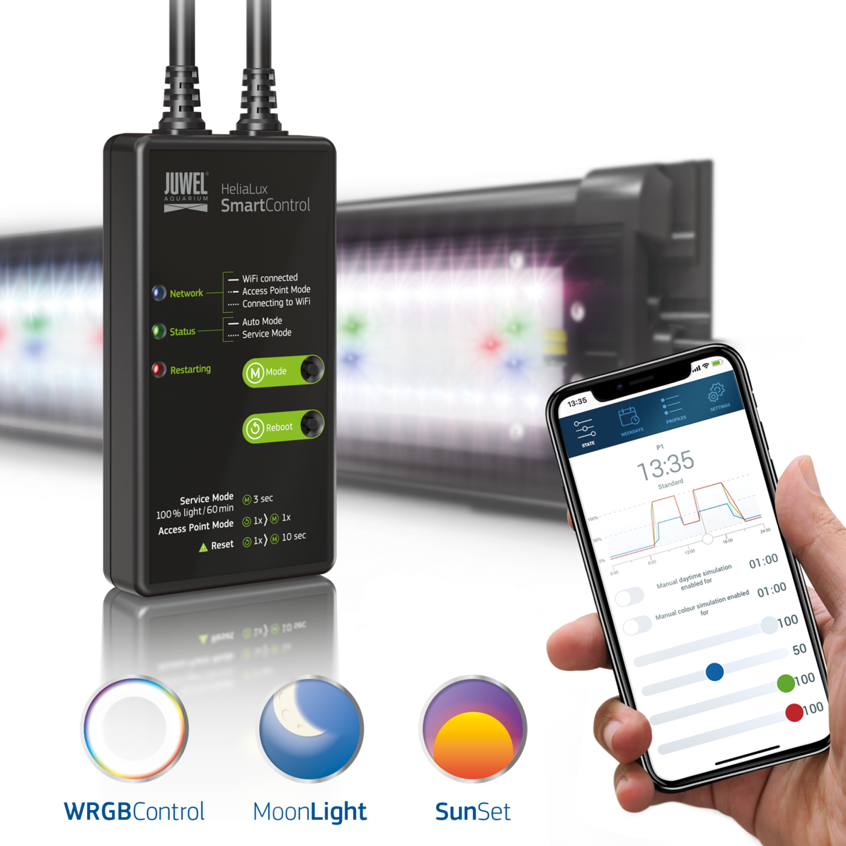 De SmartControl is een plug ’n play-systeem, middels WiFi en je mobiele app kun je alle kleuren te samen of individueel bedienen. Op deze manier is het wel heel eenvoudig en leuk om je eigen zonsopgang en ondergang te maken. Bovendien kan de verlichting gedurende de dag nu verlopen in maar liefst zestien fasen!